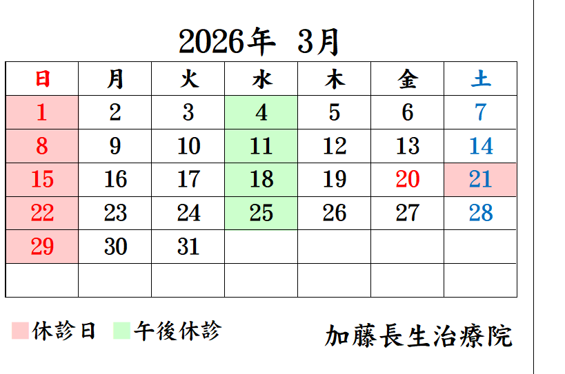 休診日のお知らせ(4月)